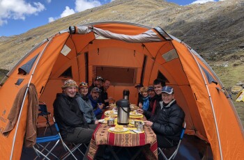 Depending on conditions todays hike will cross one of two passes. Siula Pass (4800m), with views of glacial lakes below, or Carnicero Pass (4600m), the gentler option. Both routes lead to Huayhuash (4250m), where camp is set in a wide meadow with mountain walls rising on all sides.