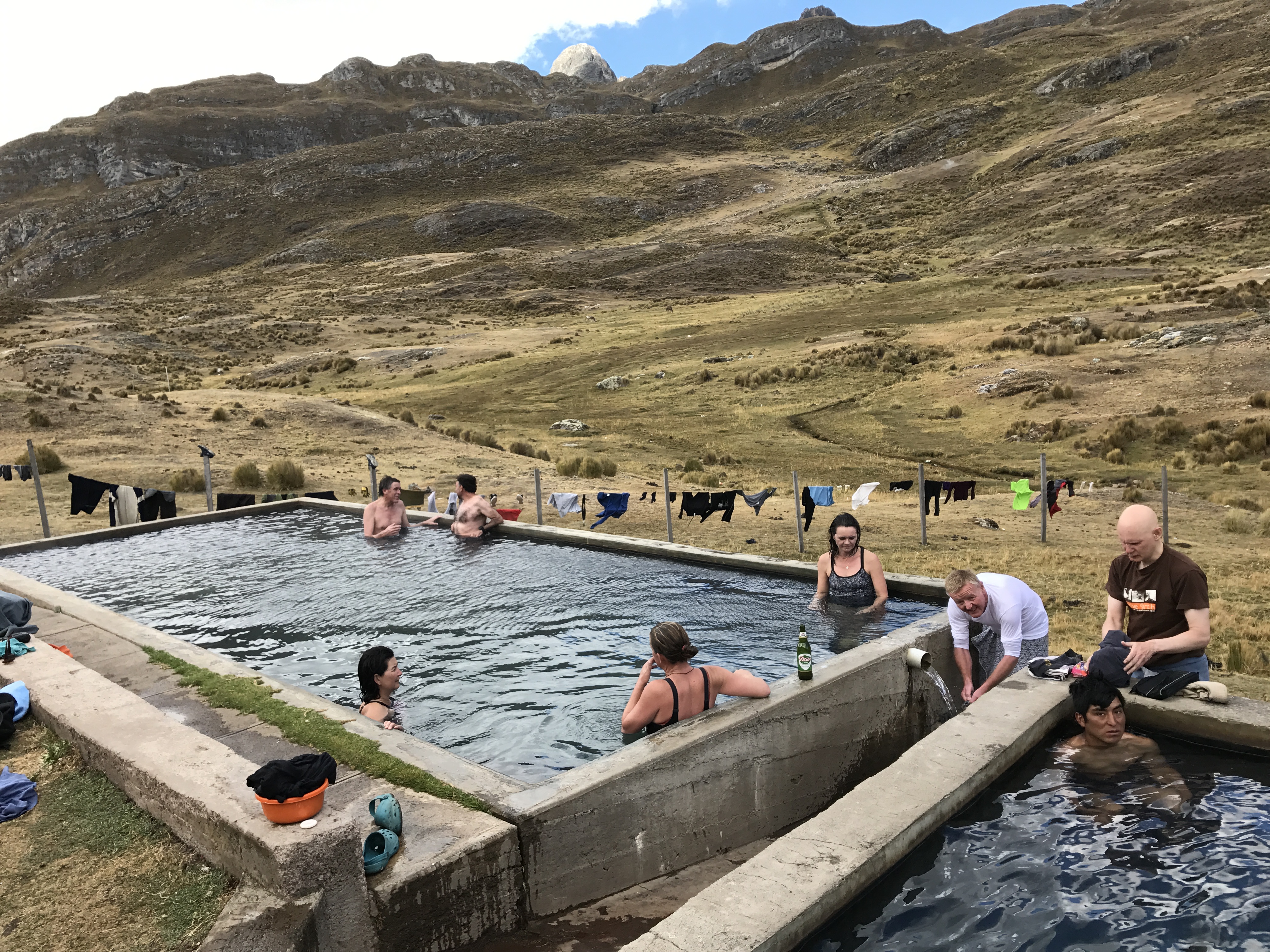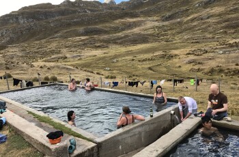 A day of contrasts, traverse stark, rocky landscapes to crest Portachuelo Pass (4650m), then descend towards the tranquil shores of Viconga Lake. Here, natural hot springs await, the perfect place to ease tired muscles while gazing at the surrounding peaks.